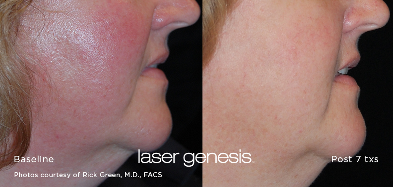 Over the course of four to five treatments, Laser Genesis can help restore the skin’s youthful glow and appearance. The individual treatment results are subtle, but the overall effect of multiple treatments can be quite dramatic. • Safely and gently treat diffuse redness