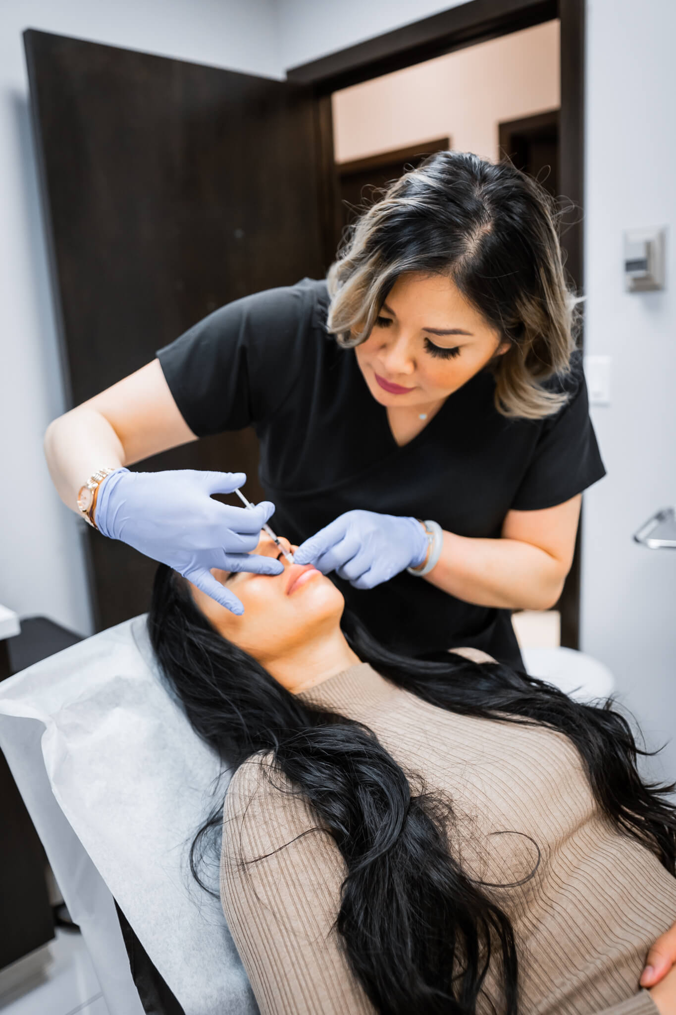 Botox Injectables are a prescription medicine. It’s injected into the muscles and works beneath the skin’s surface targetting the underlying muscle activity, which causes frown lines and crow’s feet to form over time.
