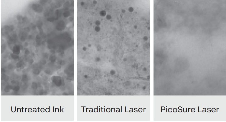 Unlike traditional Q-switched nanosecond tattoo lasers, which rely on heat to destroy tattoo ink, PicoSure delivers a photomechanical impact called PressureWave that effectively shatters ink into tiny particles.