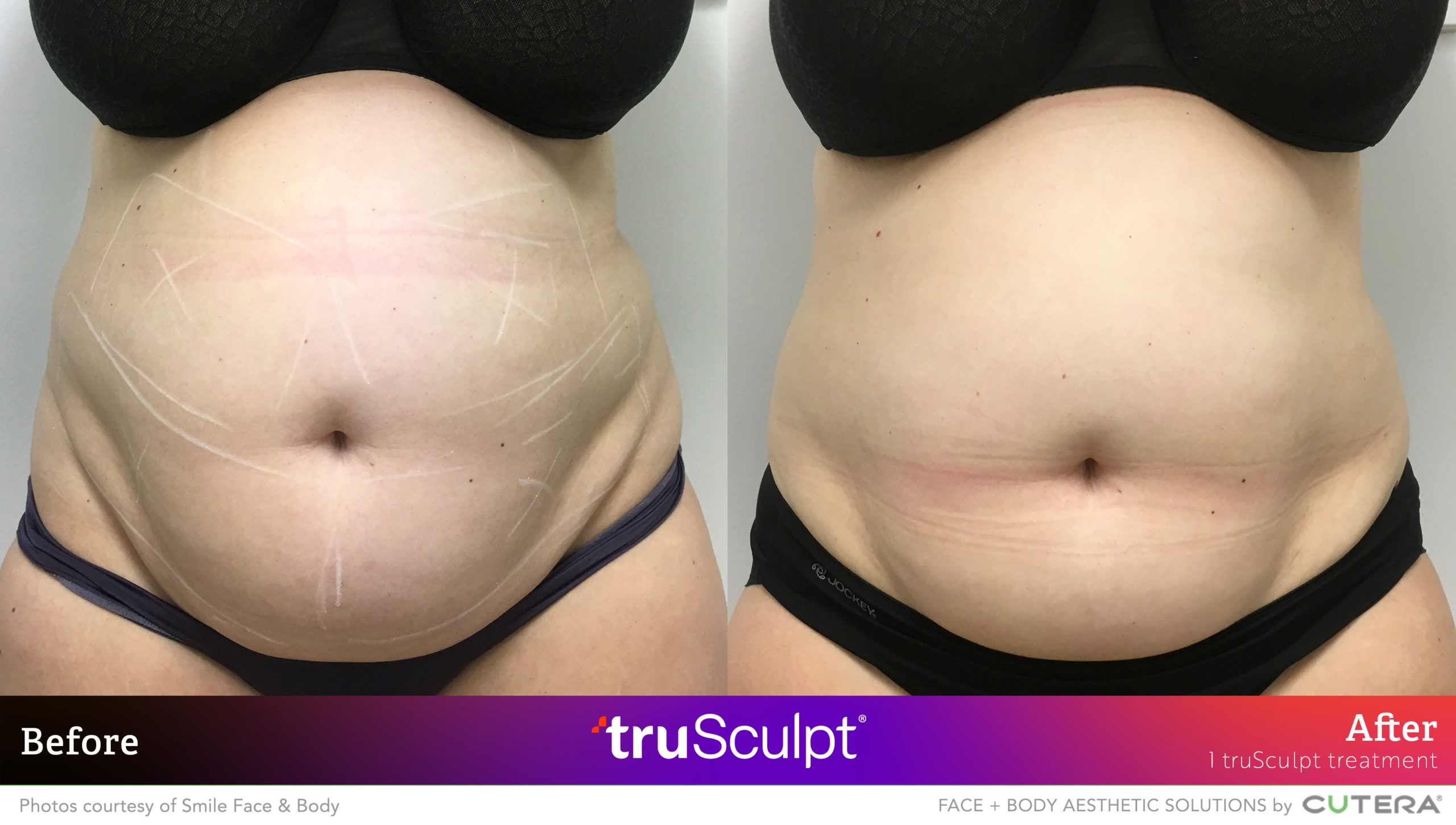 Procedure time depends on the size and number of treatment areas. It typically takes 15 to 30 minutes to treat the abdomen and flanks.